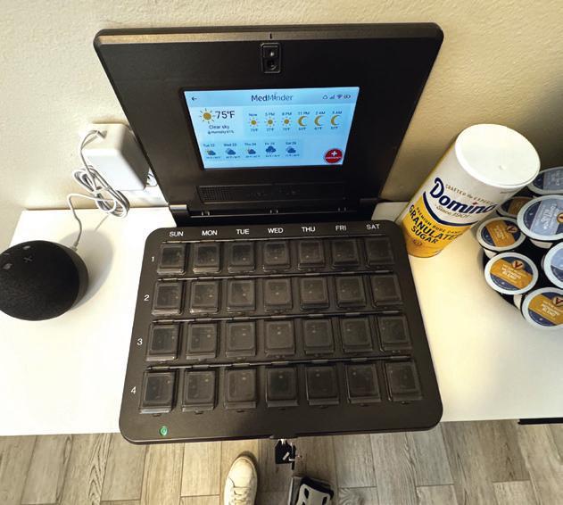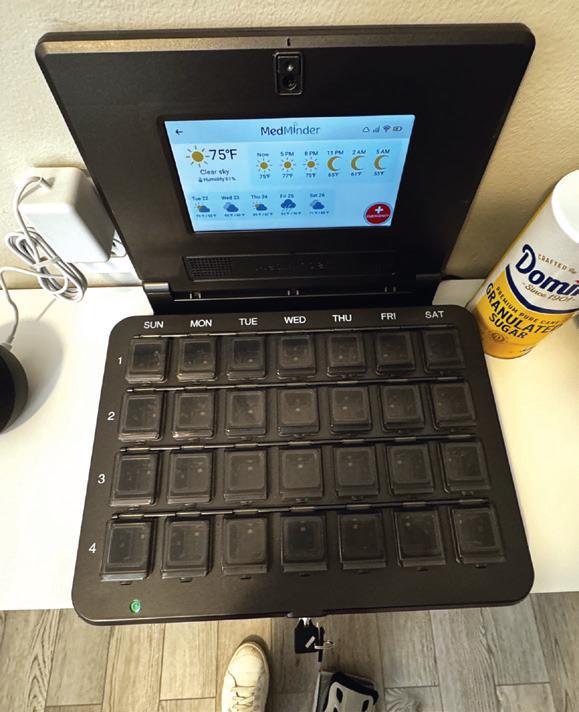 Another smart device in the home is a medication dispenser, called MedMinder, a computerized pillbox