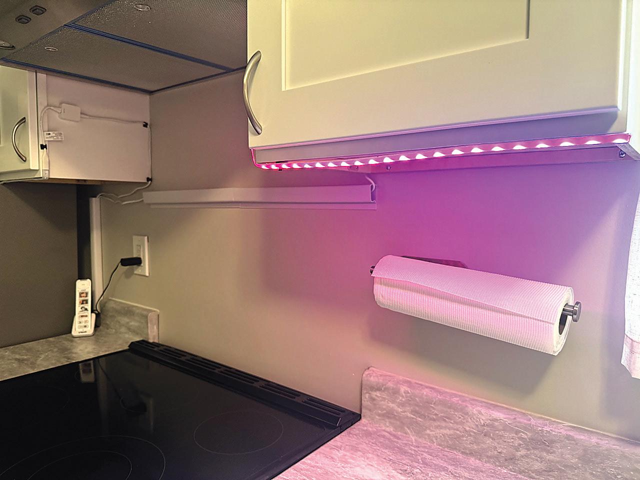 and turns the lights on or off. A pathway of lights runs from the bedroom to the bathroom, and prompts in the bathroom can be personalized to remind people to wash their hands or brush their teeth.