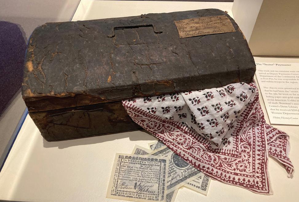 ABOVE: A trunk used by a Continental Army paymaster to secretly transport money to pay troops stationed at Fort Pitt can be seen in the exhibit.