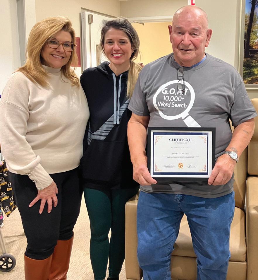 It all started in January 2023. Jenn Snyder, lifestyle engagement team lead at Woodside Place of Washington, began providing word search puzzles to keep Jim busy because she knew he had previously enjoyed them.
