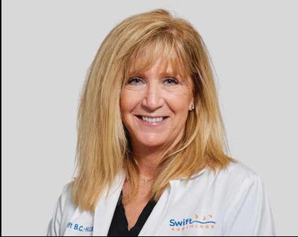 What sets Swi Audiology apart for our patients is the commitment of our dedicated sta members, who work closely with them to ensure they feel heard and cared for. “Our patients experience a family-like atmosphere that combines cutting-edge innovations with the best options to meet their hearing needs,“ explains Swi . “We understand that in today’s market, individuals are o en overwhelmed with promotions and gimmicks. While the ultimate choice is the patient’s, we strive to educate them by considering their needs, lifestyle, budget, and hearing pro le to assist in making the right decision.“