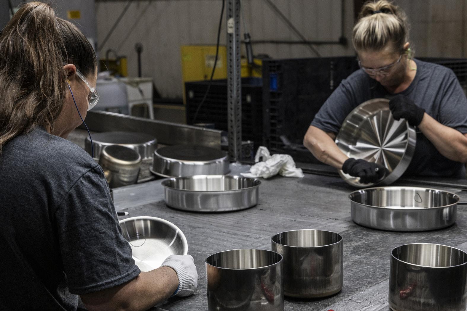 Employees inspect cookware at All-Clad Metalcrafters, headquartered and made in Canonsburg