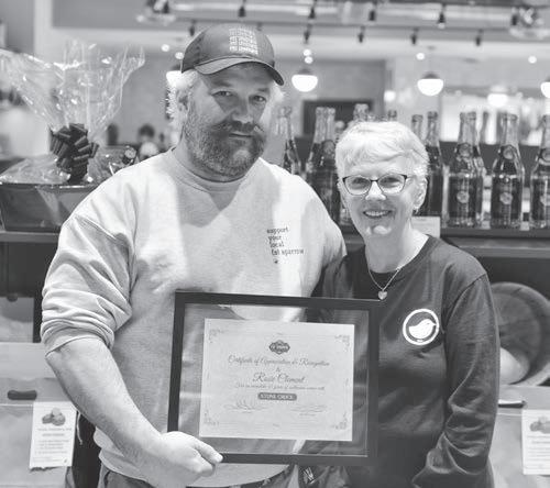 Rosie Clement last week celebrated 45 years of employment at the Stone Crock in St. Jacobs. Nick Benninger, owner of Fat Sparrow Restaurant Group, presented her with a certificate marking the occasion. Bill Atwood