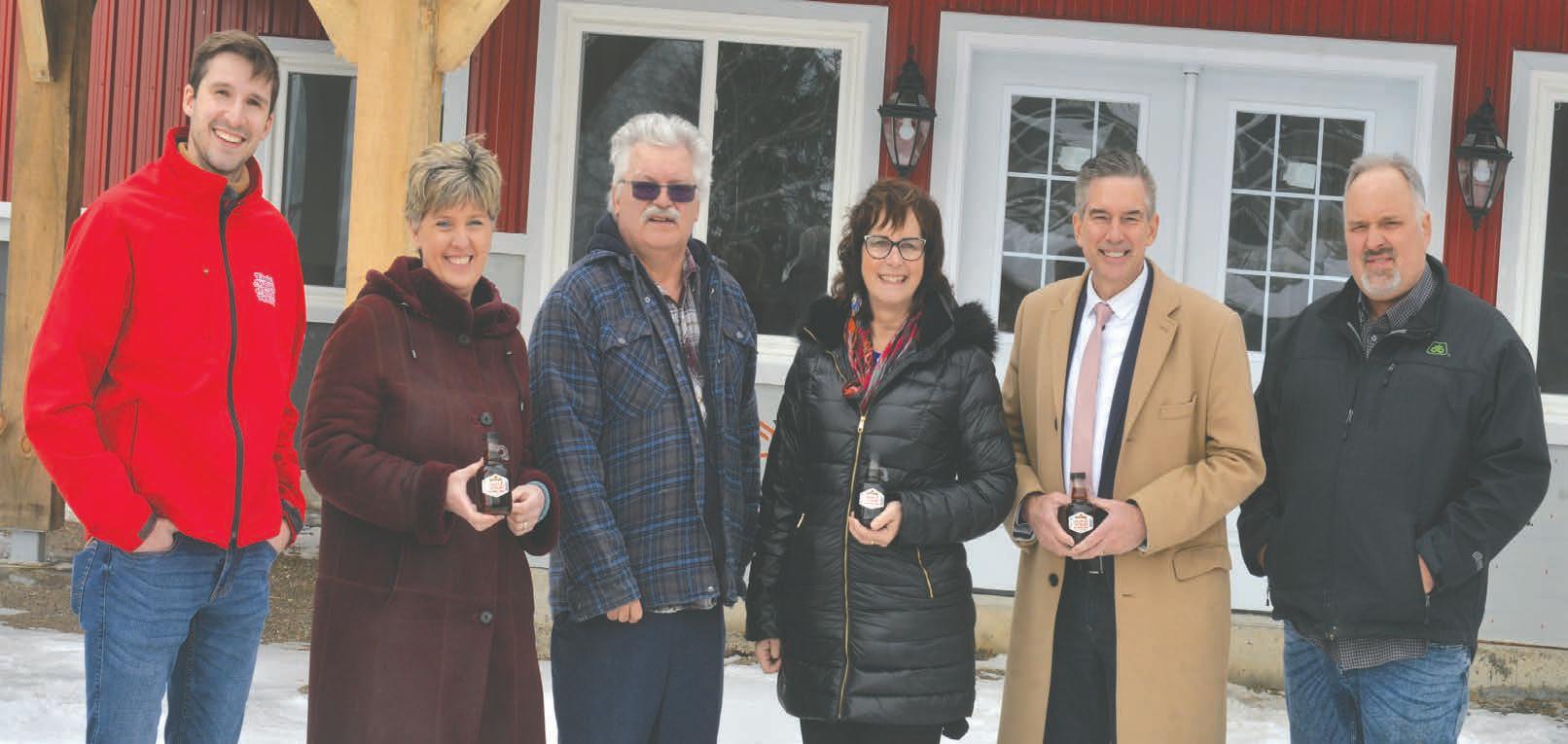 Mar. 2 in Elmira. She was joined by Matt Jessop, chair of EMSF; maple syrup producer Terry Hoover; Woolwich Mayor Sandy Shantz; Kitchener-Conestoga MP Tim Louis; and producer Fred Martin. Bill Atwood