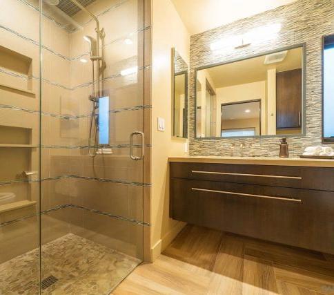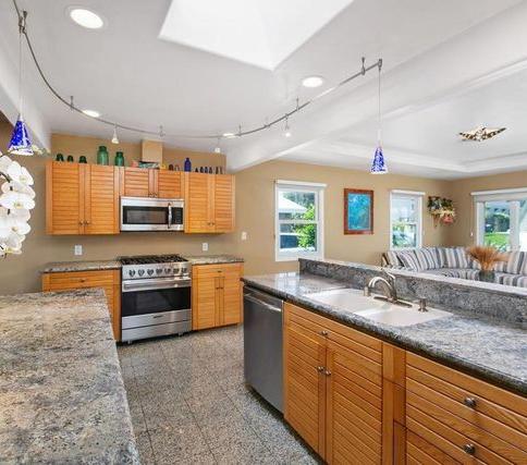 Bali-inspired beach bungalow with meticulously maintained front yard It’s on the best street in town and the best part of Neptune just a few doors down from Stonesteps Beach When you step inside, the open floorplan leads you from the front door, out back to a brand new expansive Brazilian Ipe deck (approx 1500sf) Solid construction to last a lifetime with the benches, stairs, and stringers made of Ipe No expense spared with solid 3/16 stainless hardware and cable rails. The perfect spot to enjoy a cup of coffee as the sun rises and a relaxing dip in the spa as the day fades to another glorious end. The main home’s interior features recently updated top-of-the-line Andersen windows and sliding doors, Solid Oak hardwood kitchen cabinetry and flooring, a large island, imported custom teak interior doors, solid teak vanities, and leathered granite showers in each bathroom. Owned solar with Tesla battery backup included (6.5 kilowatts across 19 panels installed by Semper Solaris about 2 years ago). As you follow the well-crafted solid hardwood stairs down to the back you will find a