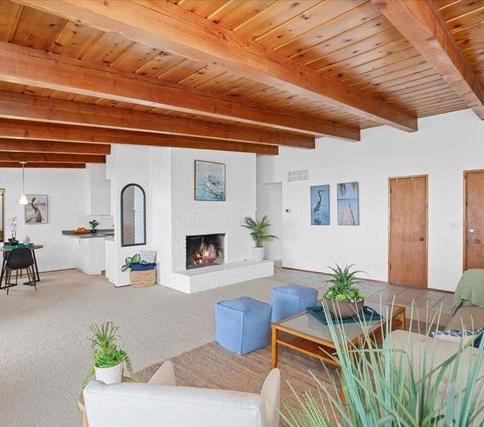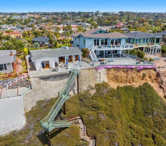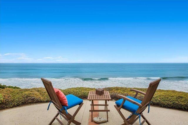 Into the blue! Breathtaking ocean views forever are captured in this singlelevel, modern midcentury beach bungalow perched on the bluff of the iconic and desirable Neptune Avenue, just 2 houses north of Stone Steps Beach access. As soon as you step into this charming 2br/2ba beach cottage you are welcomed by the stunning ocean views. Featuring great bones, this home is flooded with natural light and highlighted with exposed wood beamed ceilings and accented with a cozy fireplace. The secondary Br/Ba has a separate entrance, ideal for guests or visiting in-laws. There is also an additional room perfect for an office, den or art studio. The inviting patio echoes the true spirit of coastal living. Bask in the ocean breezes, linger in the sunshine, watch the dolphins frolic, or dine al fresco and savor the dramatic sunsets from your own patio Ideally located within walking or biking distance to the 101 corridor, Moonlight or Beacon’s Beach, cafes, pubs, art galleries, retail shops and the vibrant downtown Encinitas Original owner, 1st time on market Welcome To Paradise!