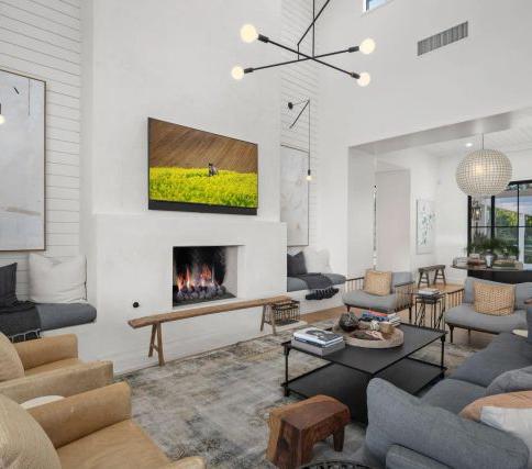 The Best of Both Worlds: Timeless Ranch Serenity Meets Coastal Sophistication Discover the pinnacle of Southern California luxury living at this extraordinary Rancho Santa Fe estate—where tranquil privacy harmonizes with effortless convenience Perfectly situated just minutes from downtown Del Mar and the historic village of Rancho Santa Fe, this remarkable property spans over two acres of lush, wooded tranquility Thoughtfully designed for both refined entertaining and comfortable family living, the estate showcases a spectacular main residence with five bedrooms, complemented by a two-bedroom guest house ideal for multigenerational living or visiting guests. At the heart of the home lies an expansive great room defined by soaring ceilings, a stunning natural marble fireplace framed in American oak, and walls of glass that capture breathtaking views of the pool, gardens, and sunny blue skies. The openconcept design flows seamlessly into an elegant dining area and a gourmet chef’s kitchen, complete with top-tier Michelin-approved appliances, a marble island and breakfast bar,