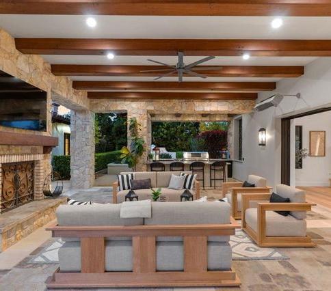 experience The property is adorned with top-quality details and finishes, including gallery halls, a steel front door, a rich office/library, a wet bar with wine storage, and a luxurious master suite with his and hers wardrobes The private patio off the master suite is perfect for evening relaxation in the jacuzzi The gourmet kitchen, designed by an awardwinning designer, features an oversized, waterfall marble island, top tier appliances, a coffee bar and cantina windows that lead into the outdoor kitchen entertainment area. Outdoor amenities include a sunken fire-pit area, an outdoor fireplace, and a bar with a BBQ, ideal for al fresco dining. The nearly 5-acre property offers ample space for potential additional amenities. Unobstructed views enhance the allure of this highly soughtafter West Side RSF Covenant location, just minutes from Del Mar’s famous beaches and shopping, yet the gated estate ensures complete peace and privacy. Equestrian trails invite the horse enthusiast, blending rustic charm with refined living