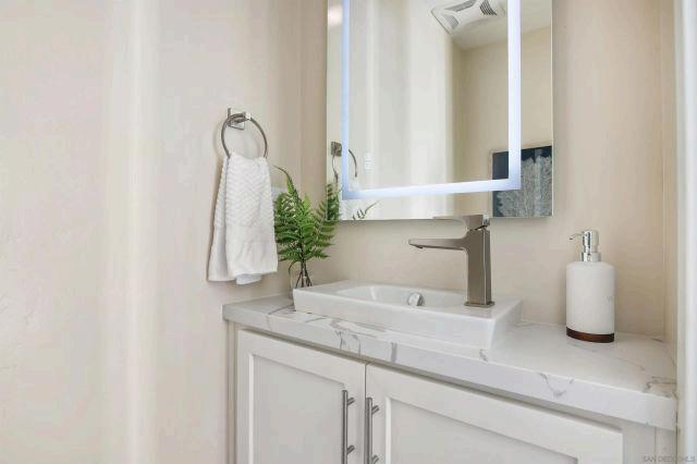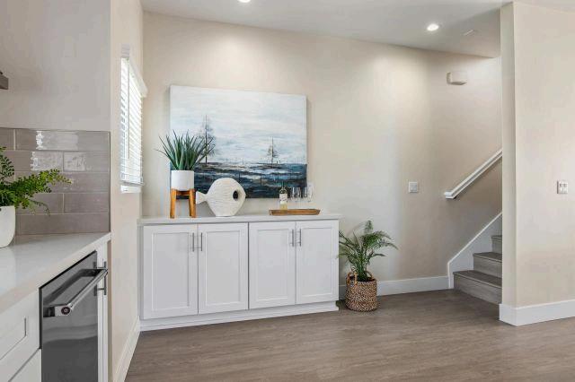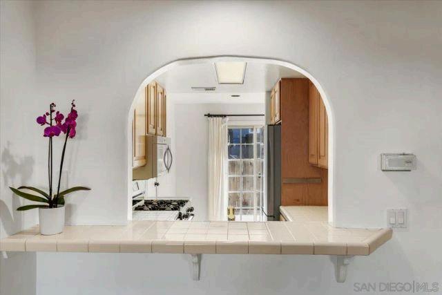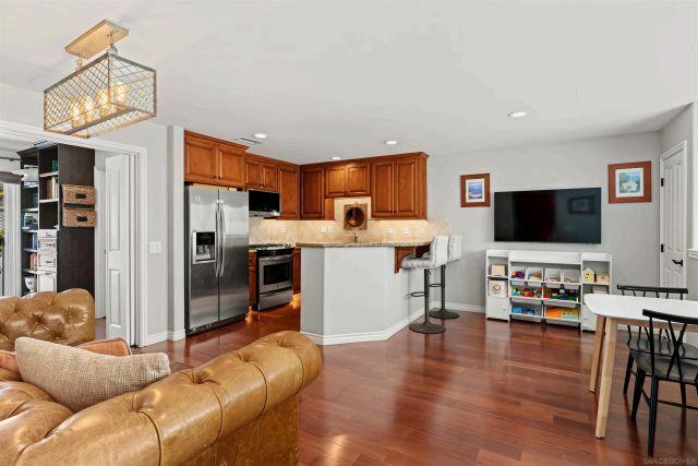 Built in 2010, this beautifully designed coastal residence blends modern luxury with the effortless San Diego lifestyle Ideally located just moments from the bay, the home enjoys beautiful bay views and exceptional walkability to the waterfront, scenic walking and biking paths, parks, and some of the area ' s favorite coastal cafés and restaurants. Inside, the home showcases quality craftsmanship, and a bright open floor plan designed for comfortable living and entertaining. Expansive windows welcome natural light and refreshing coastal breezes, and a flexible floorplan with a 3rd bedroom/living space adjacent to the main living room. The kitchen serves as the heart of the home with a spacious breakfast bar, perfect for casual dining or gathering with friends and family One of the most desirable features of this property is the three-bedroom layout, a rarity in this area at this price point Each bedroom includes a bathroom, providing both comfort and privacy for residents and guests Outdoor living is equally impressive The rooftop deck with slate counters and new wood decking