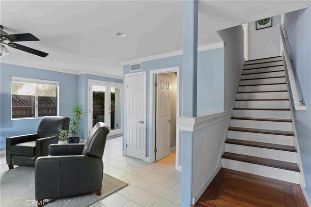 Stunning townhome just steps away from Mission Bay! Enjoy daily walks and bike rides along the bay, with a straight path down to the shores of Pacific and Mission Beach. Tucked away on a quiet street in the middle of all the beloved restaurants, shops, and attractions that PB has to offer! This Crown Point home allows for true indoor-outdoor living, with large living room windows, and the sliding glass doors leading from the open kitchen and dining areas to the private, paved patio, with direct access to the alleyway. First floor conveniently features a bedroom and full sized bathroom. The second level boasts dual primary bedrooms, each with their own en suite bathrooms, walk-in closets, private balconies, and vaulted ceilings Abundance of natural lighting, new luxury vinyl floors and carpet in the bedrooms Gas fireplace in the living room 2 car, tandem attached garage Full sized, side-by-side laundry in the hall between the bedrooms HOA covers exterior lighting/water, gardener, trash, necessary repairs to exterior of building & common areas, and HOA management fee Make this