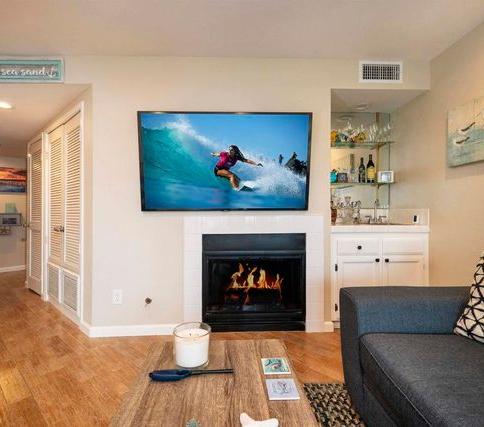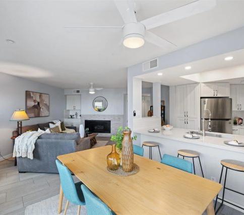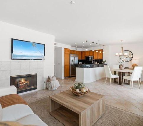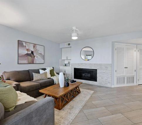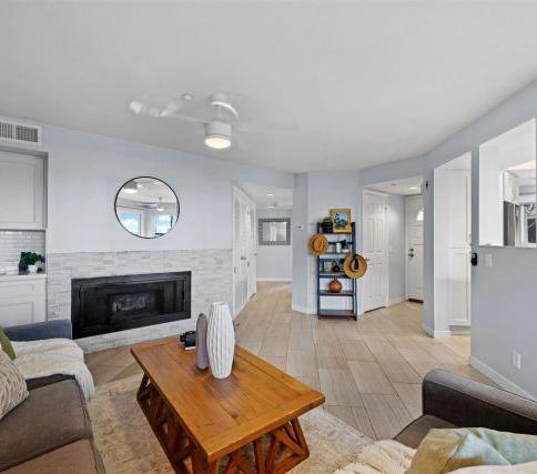 Welcome to your coastal retreat nestled in an exclusive oceanfront community, offering a view of the Oceanside pier and sparkling waters beyond. Whether it be a permanent residence, vacation home or an investment property, this condo is a coastal gem that checks all of the boxes. Step inside to a spacious open floor plan that flows effortlessly, features a fireplace with stacked stone accents, large windows to your private patio, views & this place is flooded with natural light!