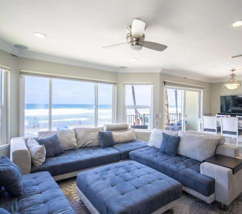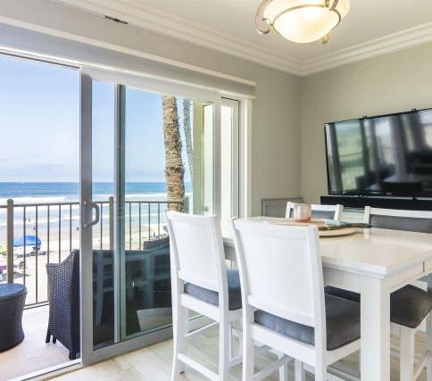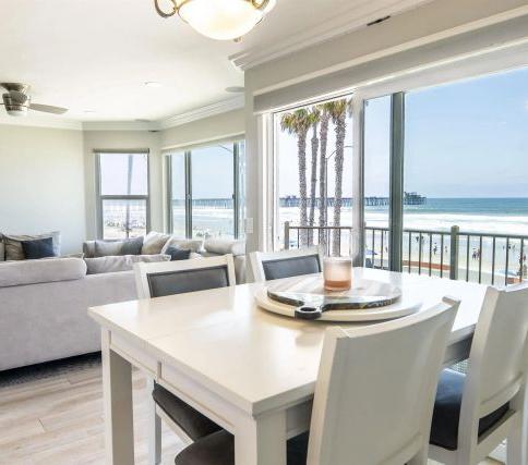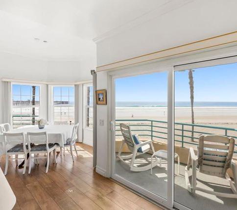 Oceanside Beachfront Condo – Southern California Lifestyle - Living on the Sand! Experience the ultimate coastal lifestyle in this perfectly located 2 bedroom, 2 bathroom condominium located right on the Oceanside waterfront in a secure complex! Features to Love include spacious living room with cozy fireplace, a dining experience with sit-down ocean views, a personal, private balcony overlooking the beach, ocean & unforgettable sunsets, light, bright interior with skylights, new flooring, countertops, and fresh paint, convenient in-unit laundry closet and the peace of mind knowing you have two parking spots in the secured underground garage exclusive to this complex. This beachfront condo opportunity sits at the corner of Surfrider and The Strand North, just steps from the sand and a short walk to the Oceanside Pier and the Junior Seau Beach Community Center. Whether you ' re seeking a full-time home, summer paradise, a weekend retreat, or investment property, this location and layout check every box. Beachfront living opportunities do not come around very often and do not get much