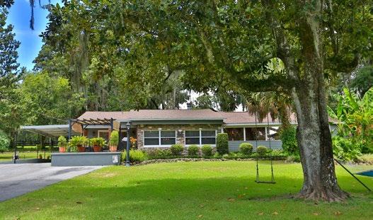 Residence sits on an elevated bliss in a serene setting surrounded by magni cent oak trees. 3/3 split bedroom oor plan with expansive living area with a rock replace overlooking the picturesque outdoors, and a separate sitting room o ering expansive Outdoor views. For horse enthusiasts, the property includes a center aisle concrete block barn with 8 stalls, a separate workshop/storage area, and a large parking pad for equipment. $750,000 GENTLEMAN’S FARM – 5.79 +/- ACRES