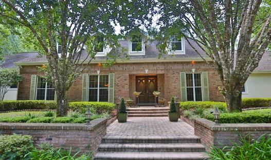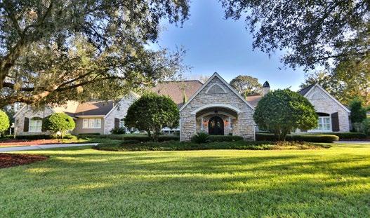 Sits on over two landscaped acres. Features re ned French Country interiors and impressive foyer. e dramatic family room features a striking black stone replace, vaulted tongueand-groove ceilings, Cypress beams, built-in cabinetry, and a private o ce. e chef’s kitchen seamlessly connects to the family room and outdoor areas, while the primary suite o ers luxury and convenience. Serene golf-course views from the screened pool area, ideal for entertaining. $2,500,000