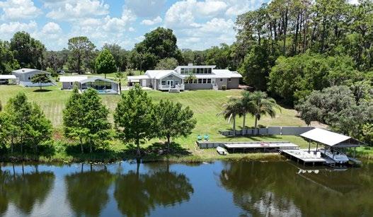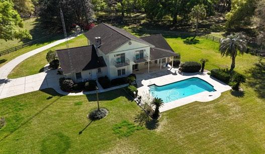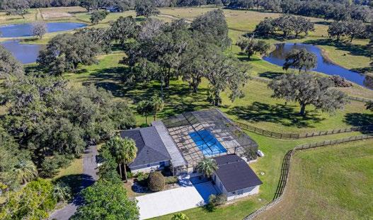 Desirable equestrian corridors, this estate o ers high elevation, craftsmanship, and versatility. e residence boasts serene views of a picturesque pond and features 5 BR, 3.5 BA, a grand gathering room, and a luxurious primary suite. A detached three-car garage and a 2-BR guest house. With ample space for equestrian use and proximity to Ocala’s equestrian destinations, this estate is perfect for a private retreat or investment. $7,800,000