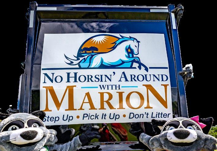 He re in Marion County, two colorful mascots are helping lead the charge for a cleaner community. Meet Rubbish and Debrie, the lively raccoon faces of the “No Horsin’ Around With Marion” anti-litter campaign. With big personalities and an even bigger message, these characters are on a mission: to teach the next generation why keeping their community litter-free matters. e campaign, organized by the Marion County Board of County Commissioners, focuses on education, awareness and community pride. You may have noticed Rubbish and Debrie on signs around the county or on a few of