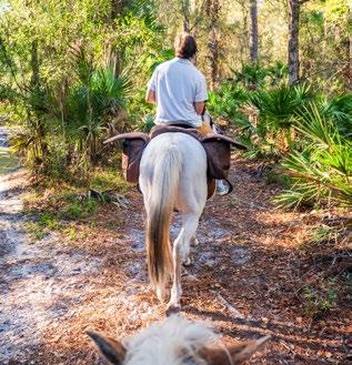 Living up to its reputation as the Horse Capital of the World®, Ocala/Marion County’s horse culture can turn any ordinary wedding weekend into an unforgettable adventure. World Equestrian Center has become a premier wedding destination with a variety of upscale venues, such as elegant ballrooms, vibrant gardens and intimate gathering spaces. A luxurious, all-inone experience, WEC o ers weekly free horse shows, upscale restaurants, numerous shopping options and a full-service spa perfect for a wedding party and guests. For interactive activities, Cactus Jack’s Trail Rides, Makin’ Tracks Trail Rides and Canyons Zip Line & Adventure Park o er guided horseback riding tours, providing a unique way to explore the destination. Complete the horse-country experience with an up-close farm tour at Gypsy Gold Horse Farm or Grandview Clydesdales to meet the horse legends raised locally. Whether guests are seeking a peaceful morning on the water or an afternoon immersed in world-class horse culture, Ocala/Marion County provides the ideal, stress-free setting for any wedding weekend. is blend of natural beauty, local culture and top-tier equestrian experiences ensures there is something to discover around every corner.