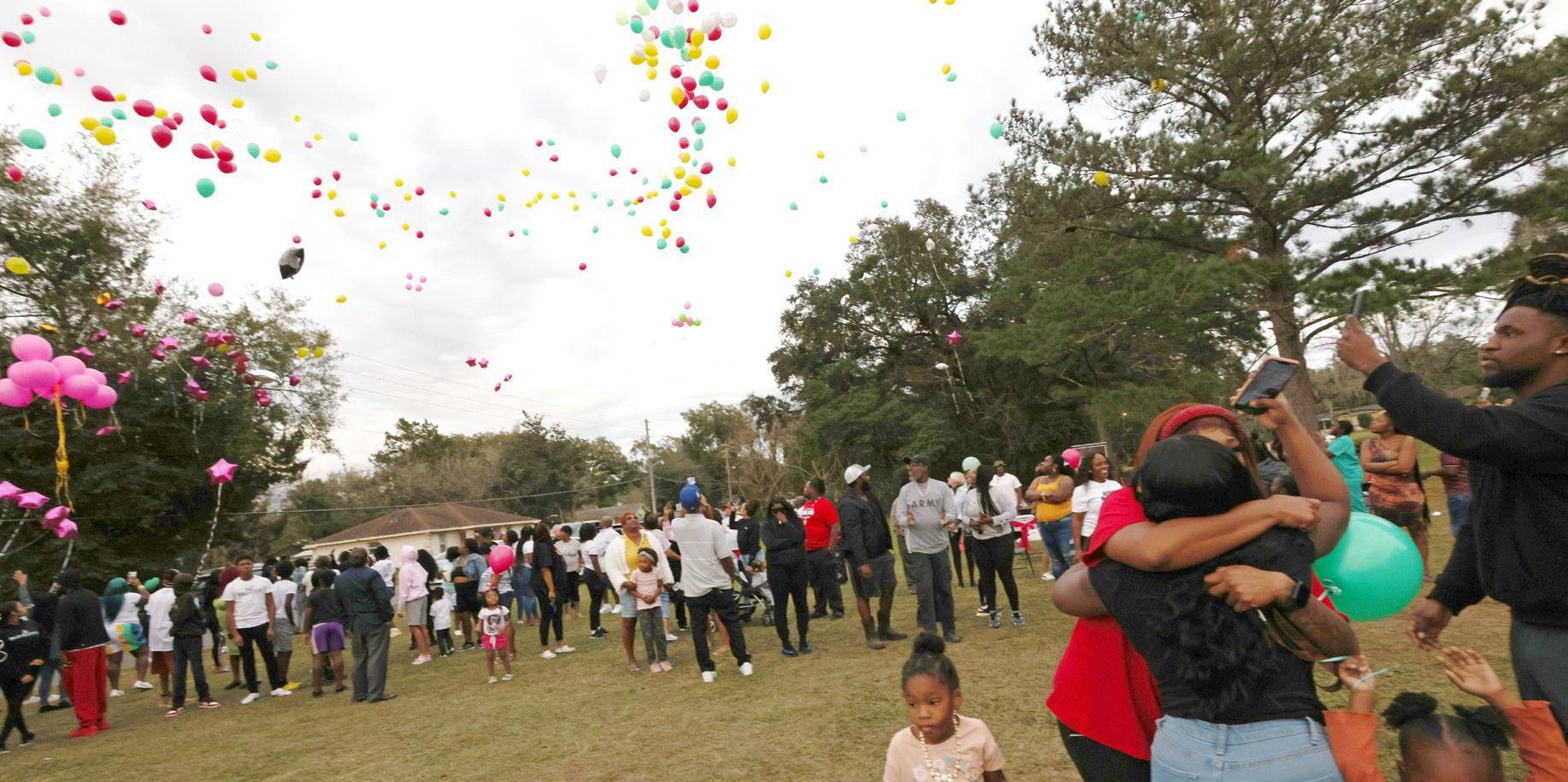 Mary Sue Rich, fourth from left, and Ruth Reed celebrate together after cutting the ribbon during the ribbon cutting ceremony for the Mary Sue Rich Community Center At Reed Place in Ocala on Tuesday, Jan. 10, 2023. [Bruce Ackerman/Ocala Gazette] 2023.