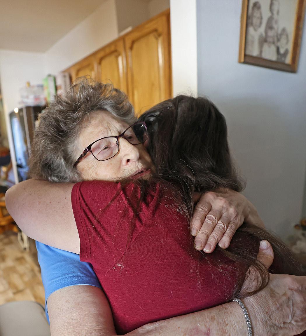 Vicki Harper, a Human Services Case Manager with Marion Senior Services, left, and Capt. Chris Hickman of Ocala Fire Rescue, center, talk with Shirley McEarchern, 87, the widow of former Ocala Fire Rescue Chief George McEarchern, as they take her vitals and provide support at her home in Ocala on Wednesday, Feb. 15, 2023. [Bruce Ackerman/Ocala Gazette] 2022.