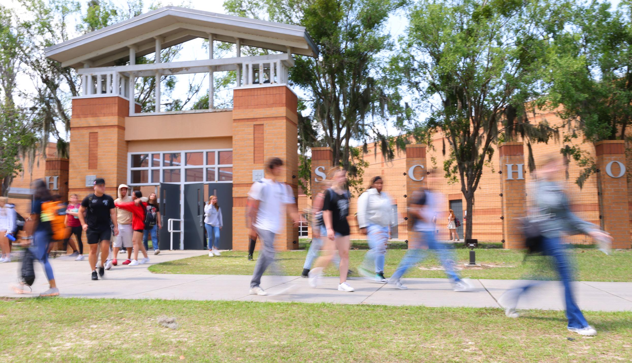 File photo: Students leave West Port High School in Ocala after the last bell on Wednesday, May 10, 2023. [Bruce Ackerman/Ocala Gazette] 2023.