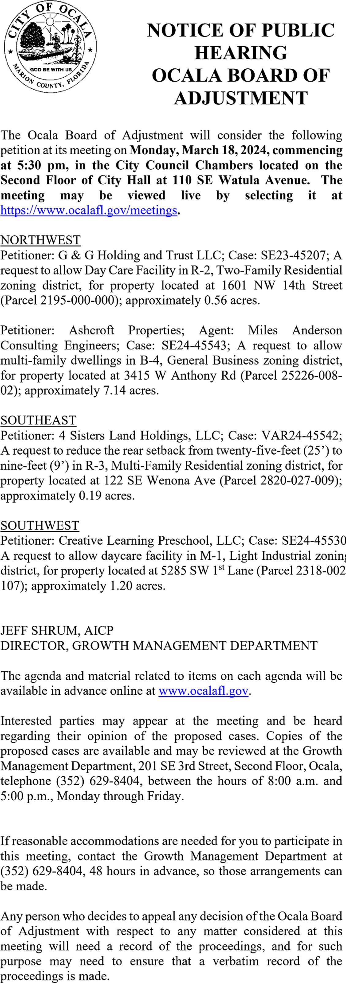 The city of Ocala will host two town hall meetings on March 7 at noon and 5:30 p.m. Both sessions will cover the same topics. These meetings are free and open to the public. Staff will cover topics