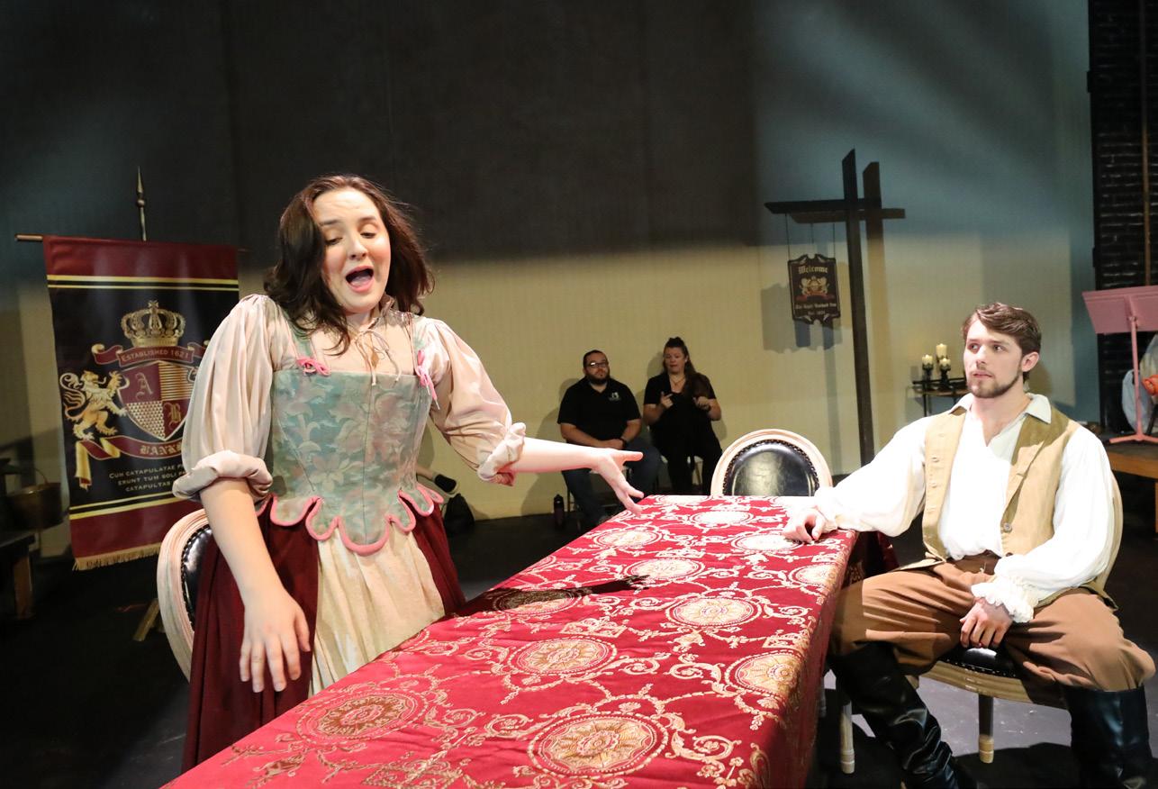 For the audience, that means we get all the best parts of a Jacobean period piece—ornate costumes, from oversized Elizabethan ruff collars to brocade vests, lace cuffs and laced-up corsets, with the straightforward settings of a cottage and a castle, complete with silver chalices at the banquet table—with none of the “thees” and “thous” of Shakespearean dialogue. Instead, the 2018 reimagining of the 1621 play “The Witch of Edmonton” uses contemporary language to engage modern audiences with the original work’s timeless themes.