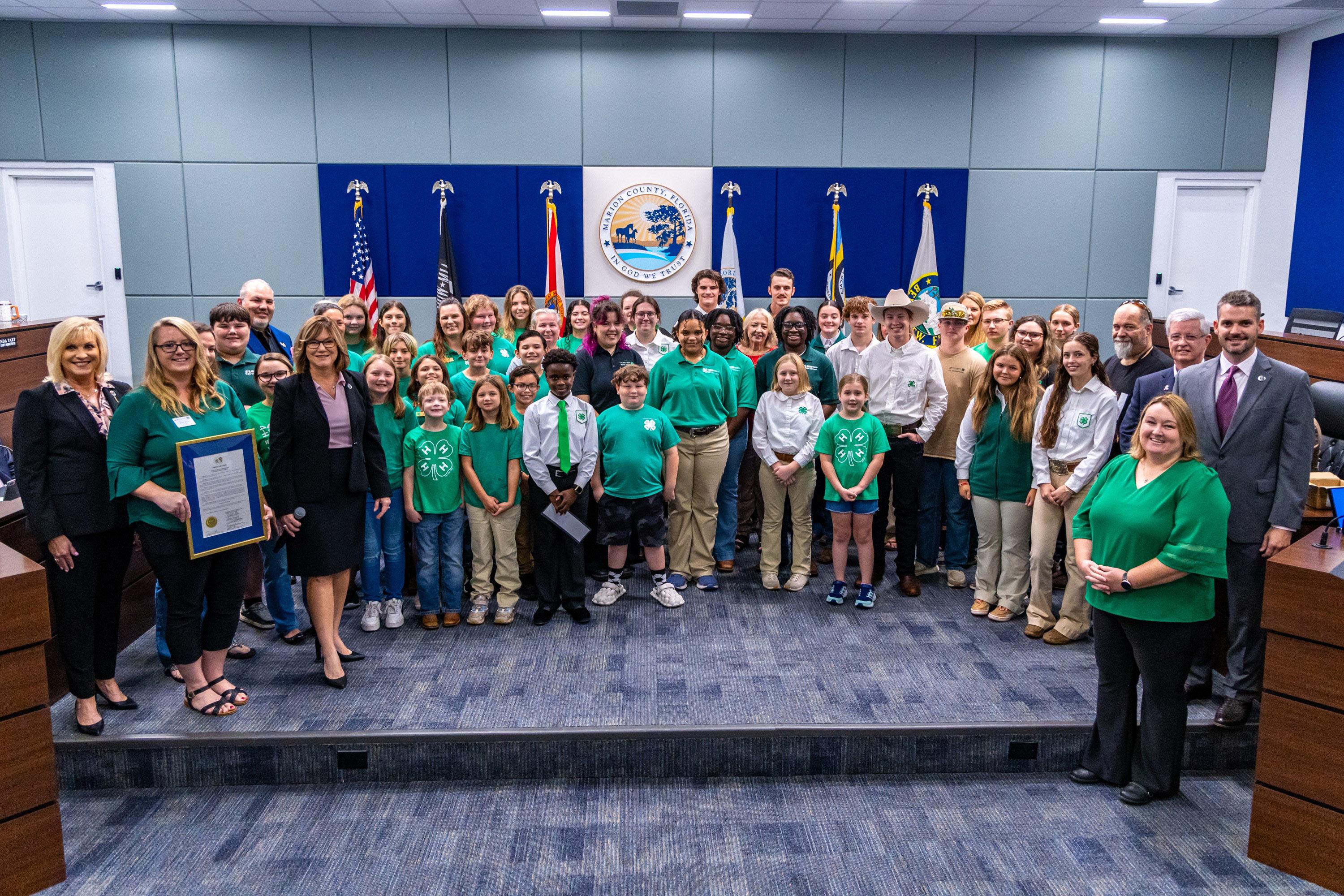 Marion County joined communities across the nation in celebrating Oct. 7-12 as National 4-H Week with the recent reading of the national proclamation in front of a large group of local participants gathered in the Marion County Board of County Commissioners chambers.
