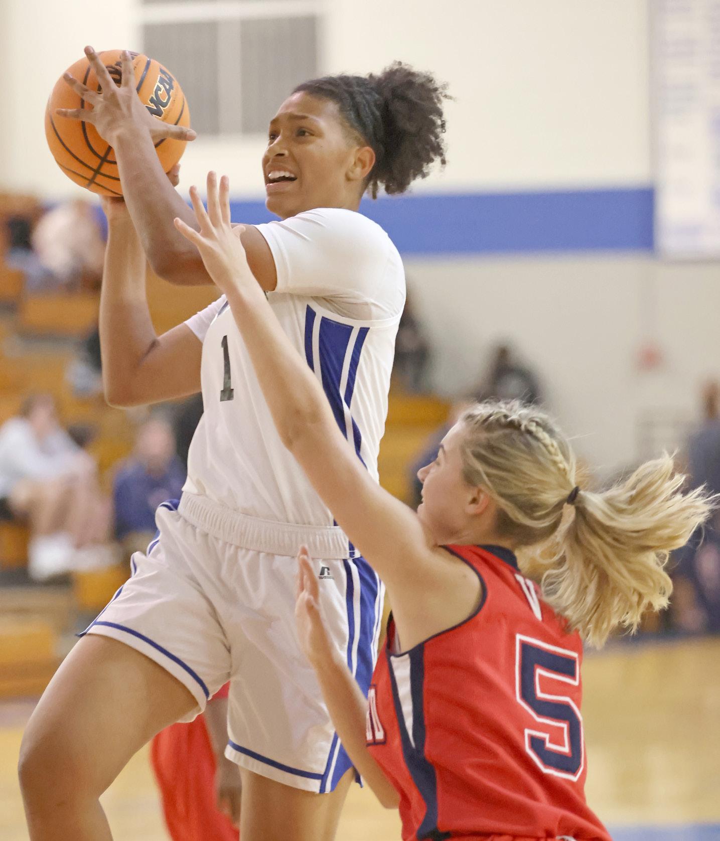 tickled the twine from the top of the key in back-to-back trips down the floor and scored on a drive to the basket to give the Eagles a 49-25 lead heading to the final eight minutes.