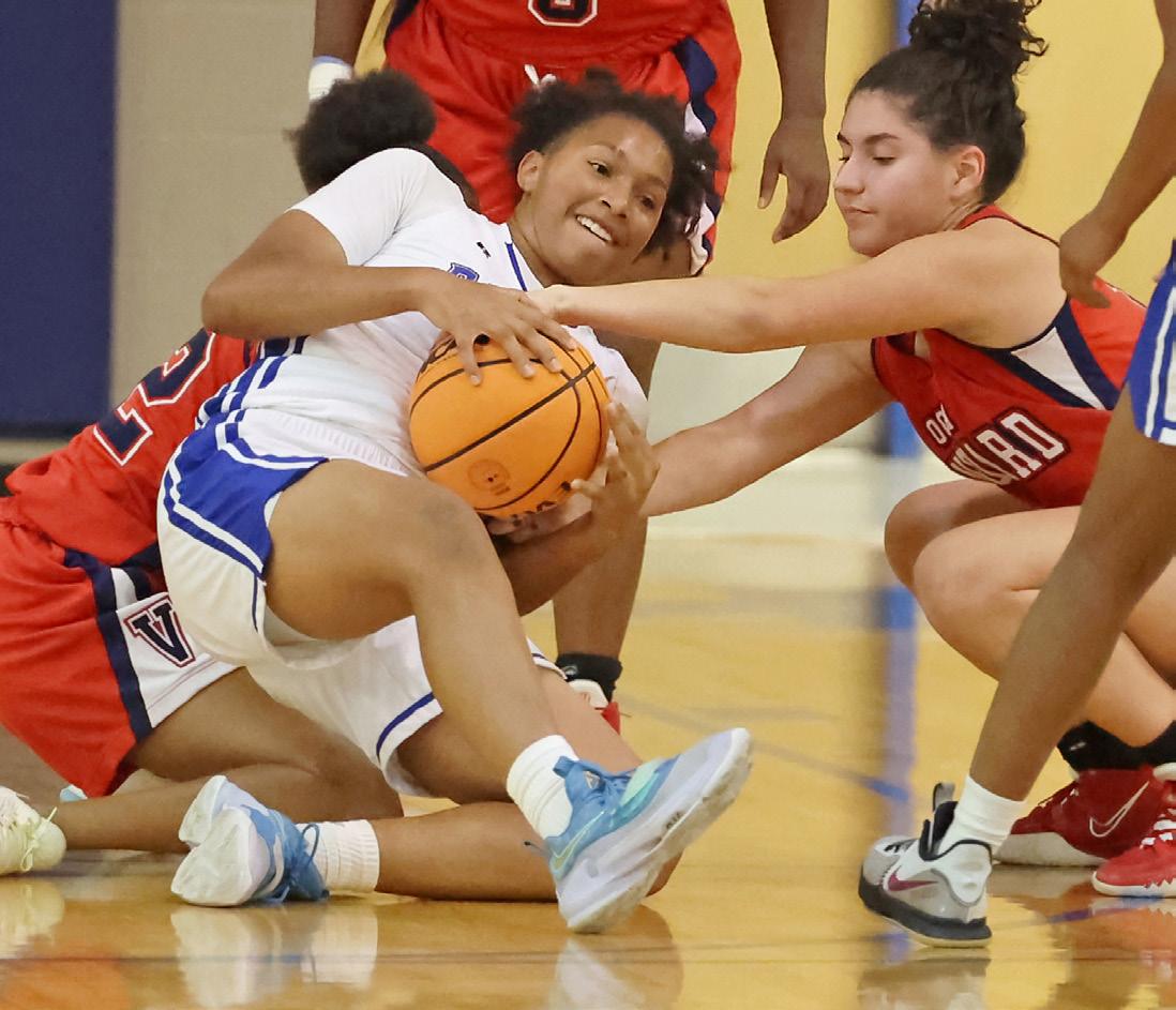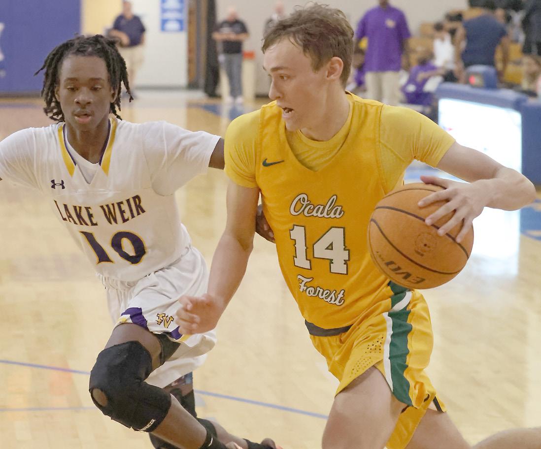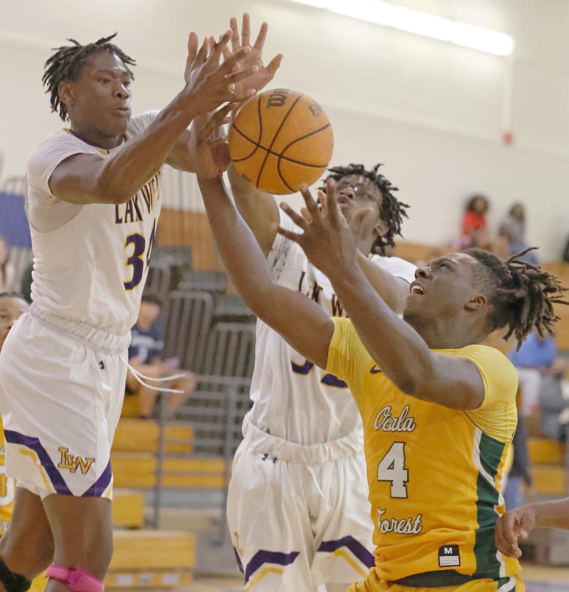 48 SELECTED MARION COUNTY HIGH SCHOOL & COLLEGE SPORTS RESULTS NOV. 14 - 19 SCOREBOARD Results were compiled by Allen Barney Forest’s Tae Floyd (4) battles for a loose ball with Lake Weir’s Alcarlos Richard (34) and John Smith (32) during a basketball game at Belleview High School in Belleview on Tuesday, Nov. 15, 2022. [Bruce Ackerman/Ocala Gazette] 2022.