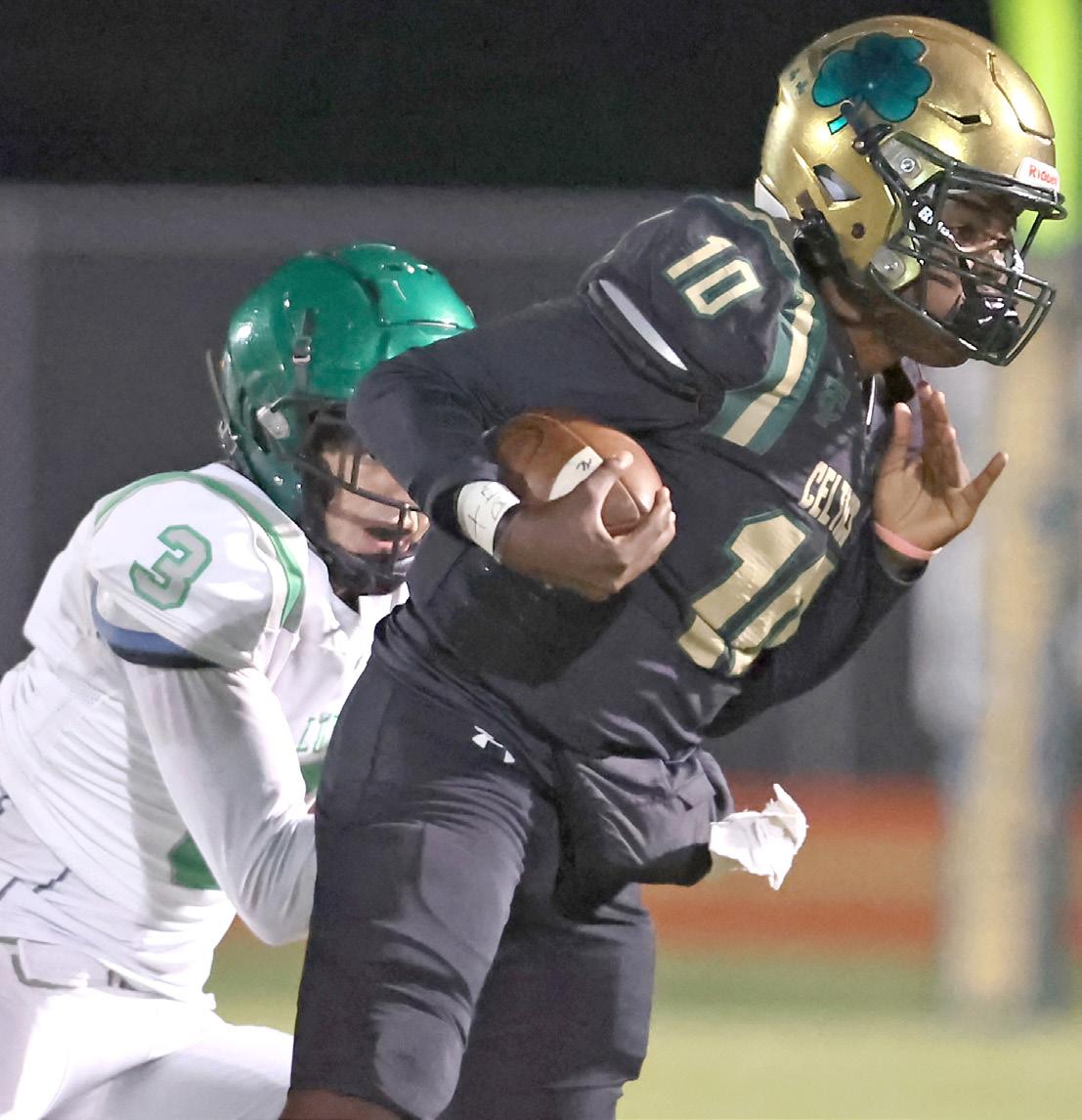 quarterback Preston Wright (10) eludes Father Lopez’ Jonathan