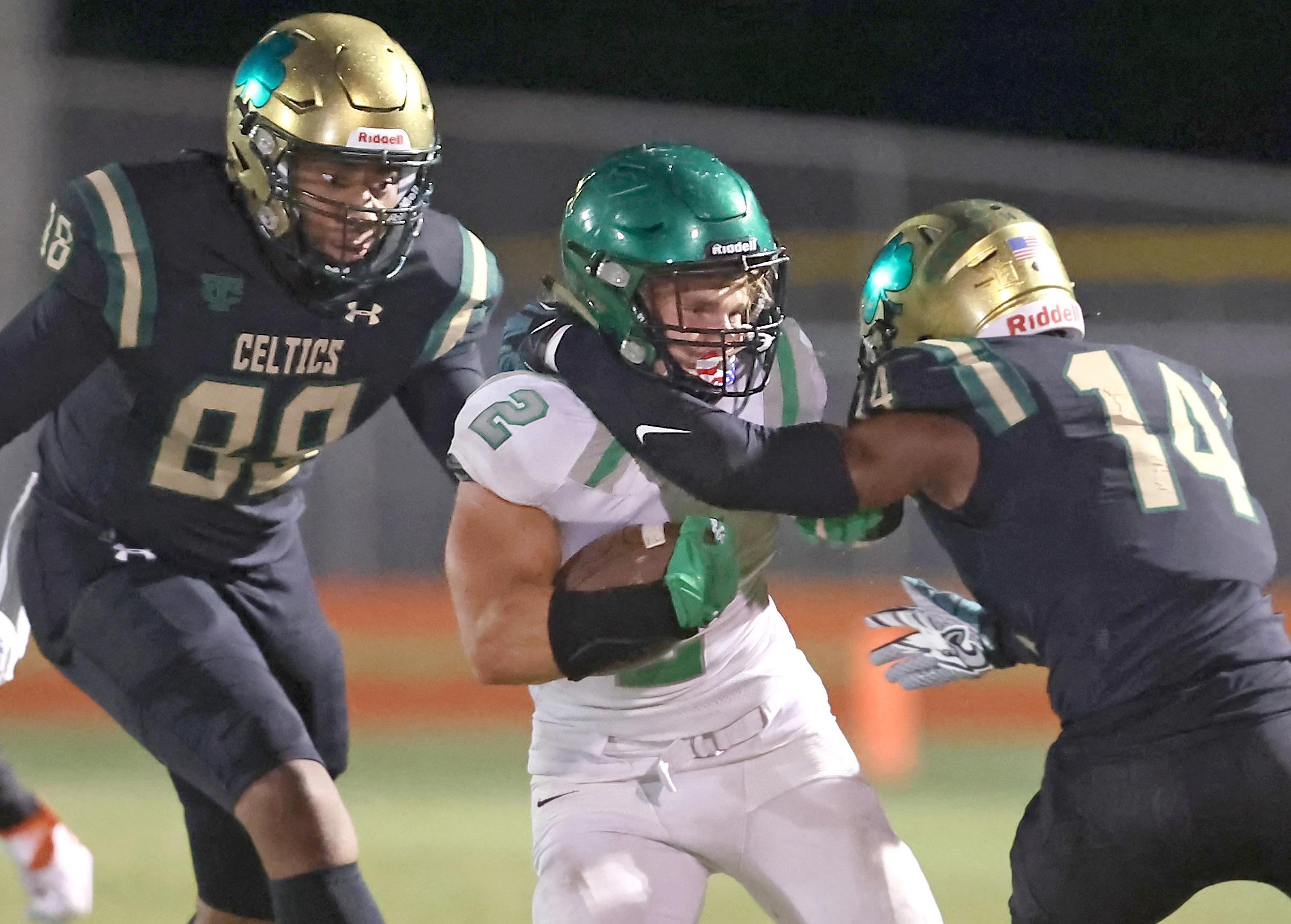 basketball game at Belleview High School in Belleview on Thursday, Nov. 17, 2022. [Bruce Ackerman/Ocala Gazette] 2022. Forest’s Zay McCoy (0) shoots over a Lake Weir defender during a basketball game at Belleview High School in Belleview on Tuesday, Nov. 15, 2022. [Bruce Ackerman/ Ocala Gazette] 2022. Trinity Catholic’s Deshawn Shelton (1) and Donathan LeCorn (23) stop Father Lopez’ Cayden Allen (7) during a football game at Trinity Catholic High School in Ocala on Friday, Nov. 18, 2022. [Bruce Ackerman/Ocala Gazette] 2022. Trinity Catholic’s