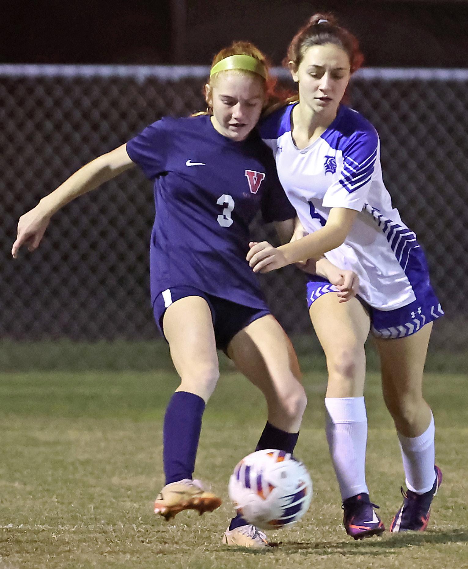 Catholic’s Micaela Gomez (2) and Father Lopez’ Rae Perez (21) go after a loose ball
