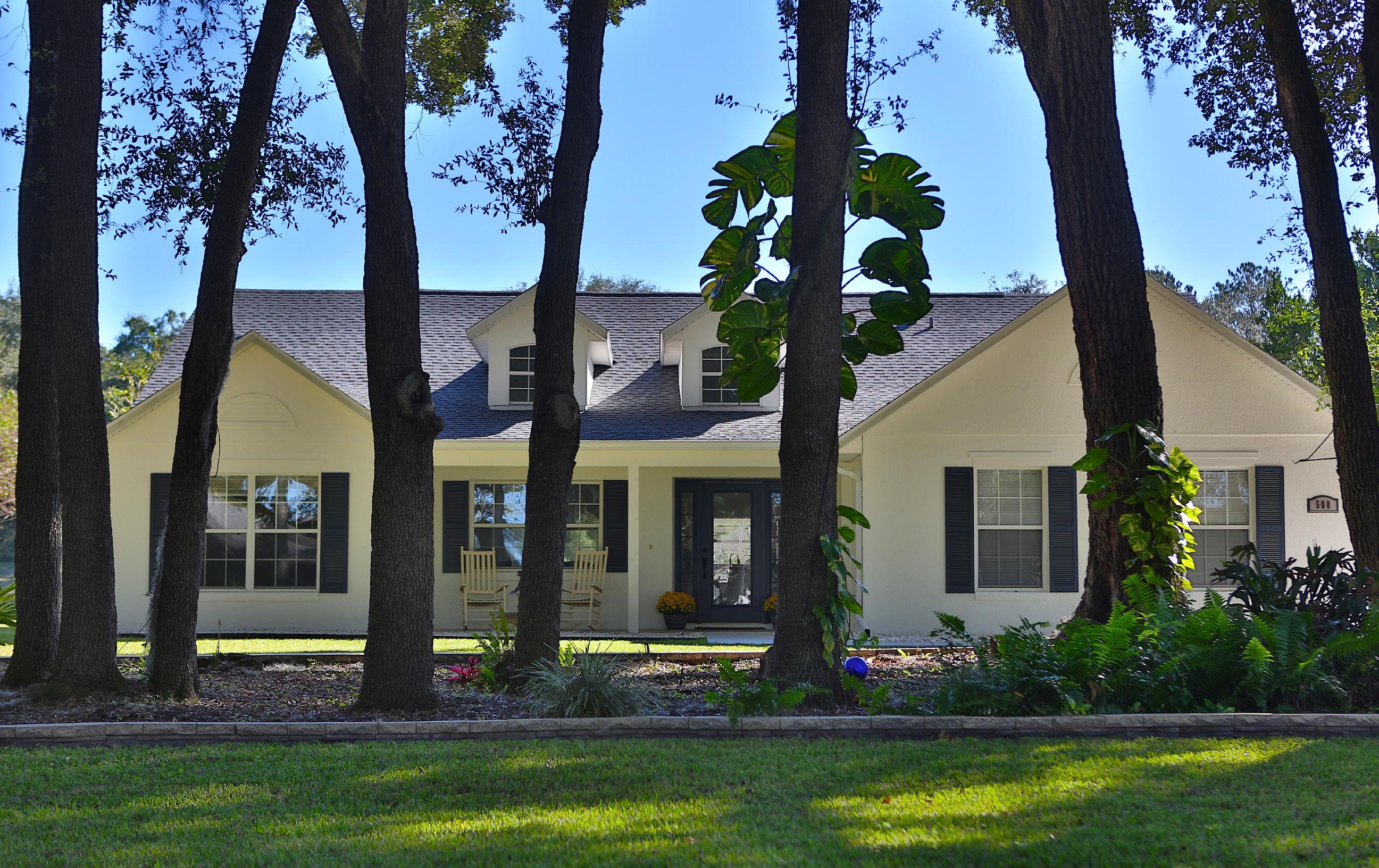 5+/- acres in Turning Hawk Ranches. This is a gated community where horses are permitted and you have access to the Florida Greenways and Trails for riding, hiking, biking and strolling for miles in the shade under live oak canopies. You are also close to the Florida Horse Park, WEC and city conveniences. A formal living room has gorgeous views of the property and dining room. The beautifully designed kitchen boasts custom maple cabinetry, an expansive island, eat-in-kitchen and large windows that allow for views of the property. The kitchen opens to the family room. The spacious owner’s suite has a luxurious bath and expansive closet. The office/study has built-in custom cabinetry. The theater/media room provides extra space for family fun or hobbies. The home offers a split bedroom plan, with three additional en suite bedrooms. The private backyard offers lush mature landscaping.