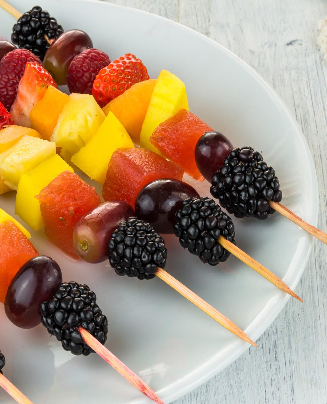 Thoroughly wash berries and cut the pineapple and watermelon into bite-sized pieces. › Thread the fruit onto skewers . › Store in a long, airtight plastic box with a snap tight lid. › Refrigerate overnight and transfer entire container to a cooler just before you set out › You can save these fruit skewers for up to three days if properly refrigerated.