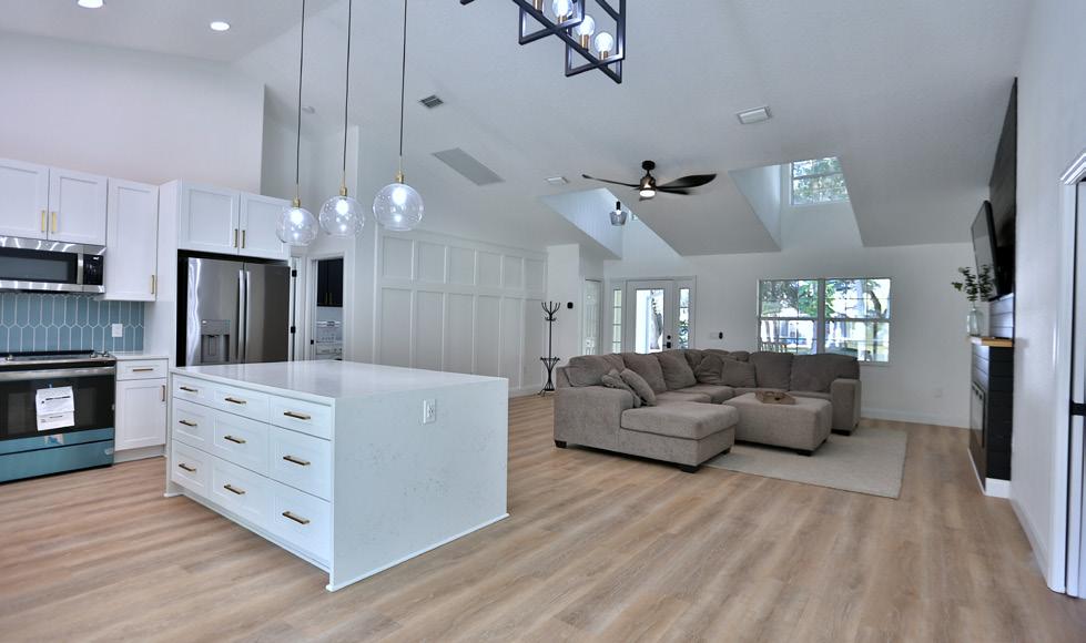 This amazing, renovated home is located in The Lakes of Lady Lake community and overlooks the golf course. As you enter the home you are surrounded with vaulted ceilings, natural light and luxury finishes. Living area offers an open floor plan, which opens to family room, dining area and kitchen with stainless steel appliances. A chef ’s kitchen is equipped with custom-built cabinets and a large center island perfect for entertaining family and friends. The home has been completely renovated with countless upgrades and features 3 bedrooms, 2 bathrooms plus flex space that is currently being used as an office/exercise area. The primary suite offers a sitting area and spacious bath. The back screen enclosed porch allows for beautiful views of the golf course. Roof and A/C both updated in 2022.