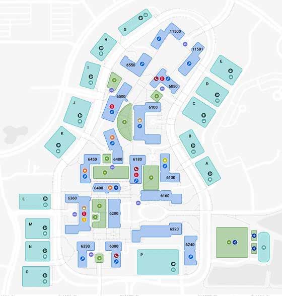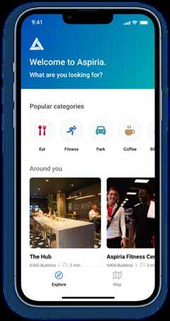 The Aspiria app is a user-friendly, low-touch wayfinding tool to navigate the sprawling corporate campus. The proprietary application offers a robust navigation experience complete with push notifications and GPS-integrated, point-to-point directions. Use the app to find the closest parking spot, get real-time walking directions and see nearby amenities on the way from point A to point B.