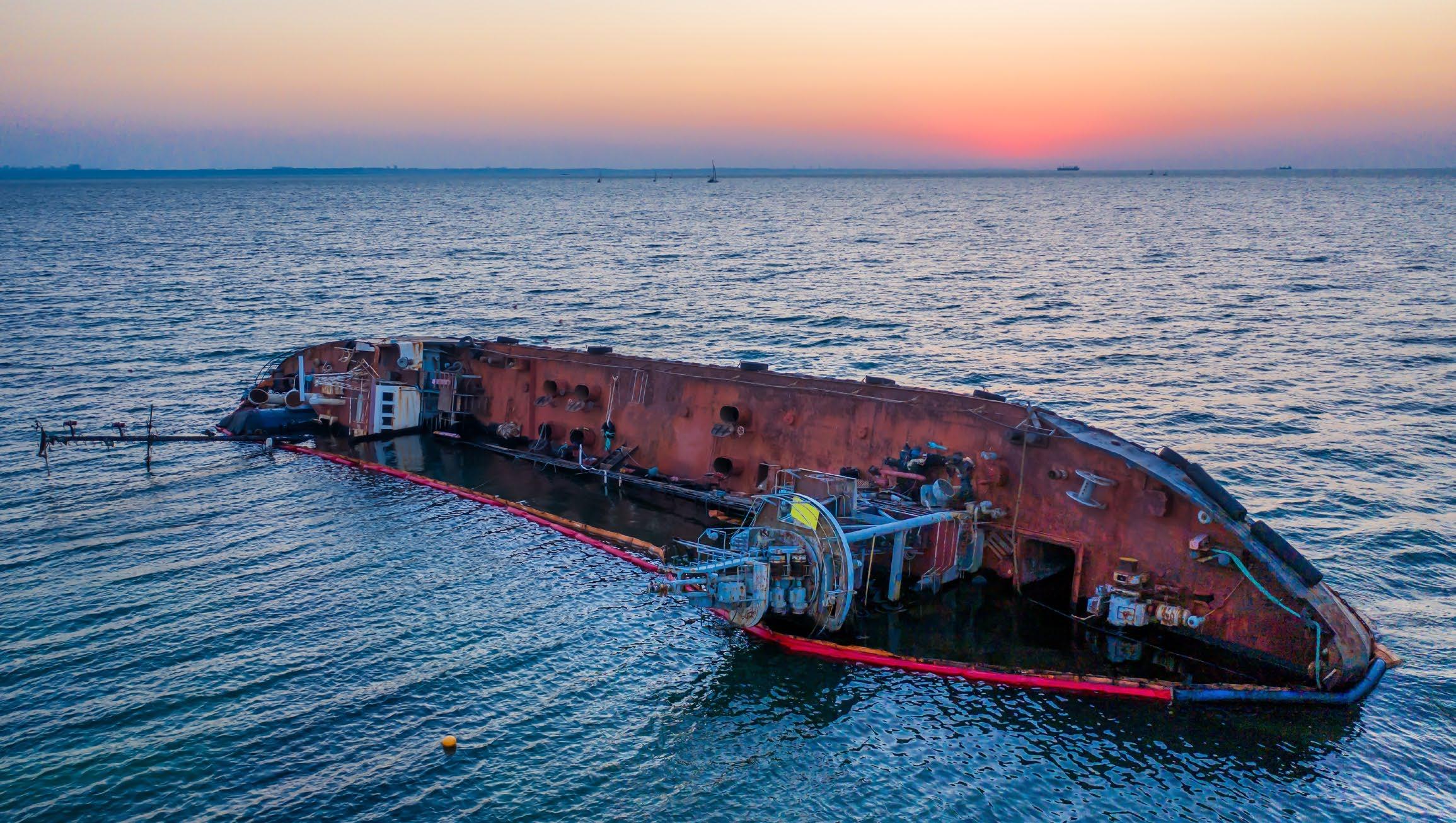A tanker overturned in a storm highlights the hazards of maritime operations.
