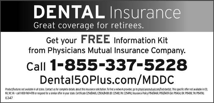 NOT just a discount plan. Do not wait! Call now! Get your FREE Dental Information Kit with all the details! 1-855-337-5228 www.dental50plus.com/ MDDC#6258
