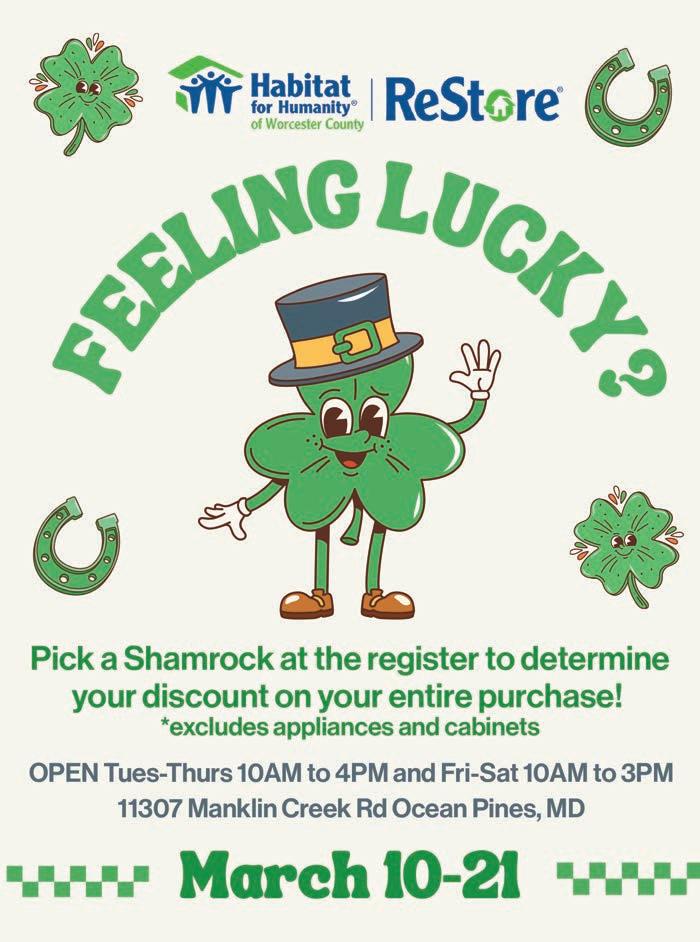 Ocean City library, 10003 Coastal Highway. Pick up a copy of this month’s read. Come in by March 30 to share your impressions and enter into a drawing to win free books. 410-524-1818