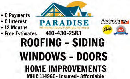 April 4, 2024 Bayside Gazette Page 31 Your Online Community: www.baysideoc.com PRINTING & DESIGN 11065 Cathell Road • Ocean Pines 410-208-0641 • copycentral@verizon.net OPEN Mon.-Fri. 9am-5pm ONE STOP SHOP For ALL YOUR PERSONAL & BUSINESS NEEDS NOT YOUR AVERAGE COPY CENTER Full Business Center Custom Gifts Graphic Designs Retail Gift Items Wedding Print Services PRINTING DESIGN REAL ESTATE ROOFING Your Roofing, Siding & Home Improvement Specialist Since 1989 ROOFING • SIDING • DURADEK • WINDOWS • GUTTERS Mike Moesle 410-629-1573, Fax: 410-629-1946 mmoesle@shoresidingmd.com www.shoresidingmd.com *Licensed in MD, DE &VA ROOFING & SIDING ROOFING DIRECTORY POWERWASHING all servicesw/this ad! POWERWASHING / SOFT WASH Atlantic Coast Powerwashing Services Year round services w/yearly & seasonal rates Hot Water, Powerwashing & Soft Wash Systems • Houses • Deck Staining • Decks • Docks • Restaurants • Shopping Centers • Roofs • & More MHIC 97081 Ocean City 34629 • Delaware 2004 222 381 Licensed & Insured 410-603-3400 Joe Beran/Owner Operator acms1st@gmail.com Atlantic Coast Powerwashing Services Reasonable Ratess • Commercial & Residential • Complete Exterior Cleaning FREE ESTIMATES POWERWASHING / SOFT WASH ROOFING Pete C. Harrison, Sr. 27805 Greenwood Road Denton, Maryland 21629 MHIC #35534 Business: 410-820-6969 Cell: 443-496-0726 www.pavemasterpaving.net PAVING