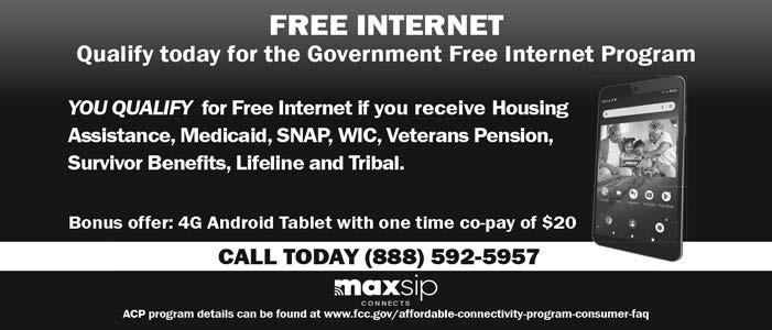 MISC. SERVICES FREE high-speed internet for those that qualify. Government program for recipients of select programs incl. Medicaid, SNAP, Housing Assistance, WIC, Veterans Pension, Survivor Benefits, Lifeline, Tribal. 15 GB internet service. Bonus offer: Android tablet FREE with one-time $20 copay. Free shipping & handling. Call Maxsip Telecom today! 1-888-592-5957