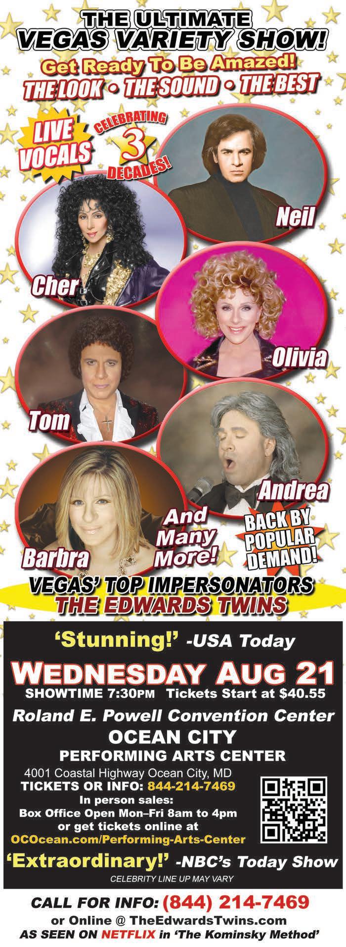 Knights of Columbus (behind St. Luke’s Church), 9901 Coastal Highway, Ocean City, 5-6:30 p.m. Menu for all ages including steamed crabs and steamed shrimp. Crabs must be pre-ordered by calling 410-524-7994 Monday or Tuesday morning.