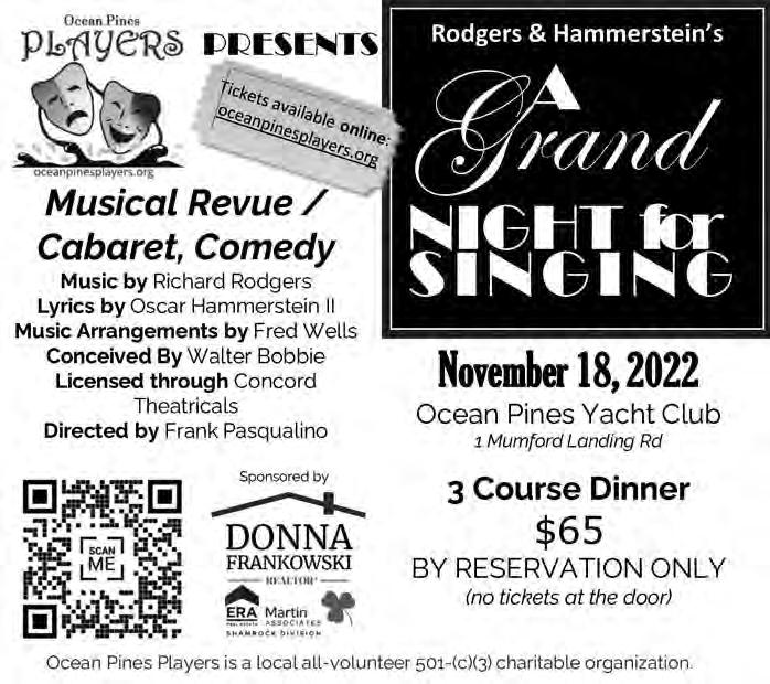 Atlantic Hotel, Downtown Berlin, Nov. 13, 1 p.m. Tickets cost $40 (or $45 to include a crab cake) and can be purchased by sending a check to Judi Menavich, 9 Drawbridge Rd., Berlin, MD 21811 by Nov. 7.