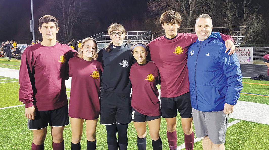 Senior All-Star game on Nov. 22 at Queen Anne’s High School. They are joined by Decatur varsity boys’ team Coach Jamie Greenwood.
