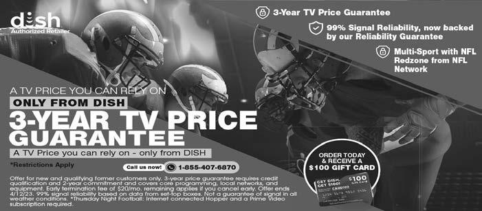 MISC. FOR SALE DISH Network. $64.99 for 190 Channels! Blazing Fast Internet, $19.99/mo. (where available.) Switch & Get a FREE $100 Visa Gift Card. FREE Voice Remote. FREE HD DVR. FREE Streaming on ALL Devices. Call today! 1-855407-6870