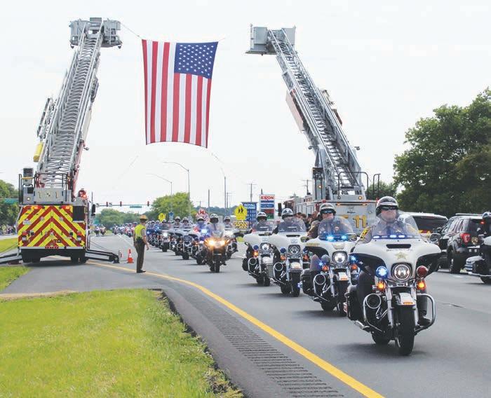 Motorcyclists ride down the Boardwalk on Sept. 11 near North Division Street as part of the Red Knights Motorcycle Club’s tribute parade.