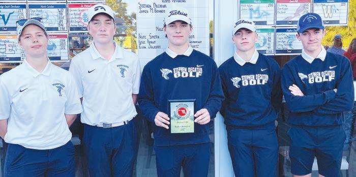 The Stephen Decatur golf team captured the District VIII tournament championship title in October at River Marsh Golf Club in Cambridge. Pictured, from left, are sophomore Sam Boger, freshman Johnny Malinowski junior captains Kole Kohut and Evan Oglesby and sophomore Clayton McCabe.