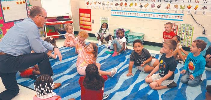 Lou Taylor, superintendent of Worcester County Public Schools visits with students at Buckingham Elementary on the first day back in September.