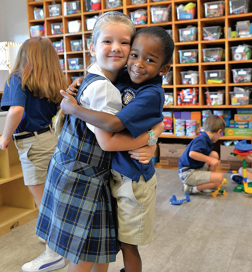Worcester Preparatory School students returned in stages starting with Upper School (ninth to 12th grade) on Aug. 30; followed by Middle School (sixth through eighth grades) on Aug. 31; and Lower School (Pre-K to fifth grade) on Sept. 1. Best friends Parker Moreland, left, and Romie Creveoeur are reunited on their first day of kindergarten.