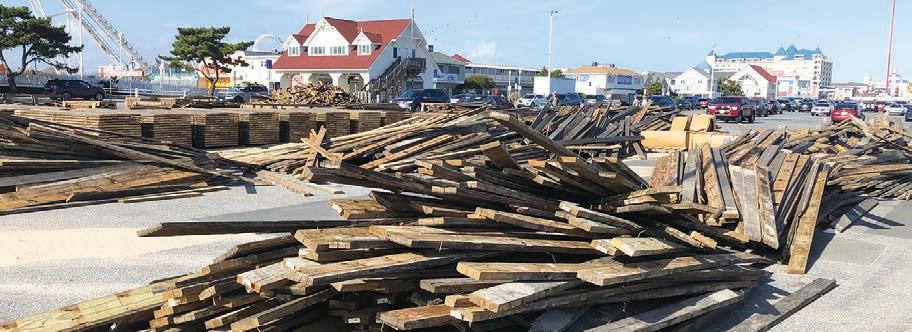 The Town of Ocean City is in Phase II of its Boardwalk Re-decking Project, from Wicomico Street to 15th Street. The re-decking project is expected to be completed by late April. The photo was taken in early November of old board piled in the inlet parking lot.